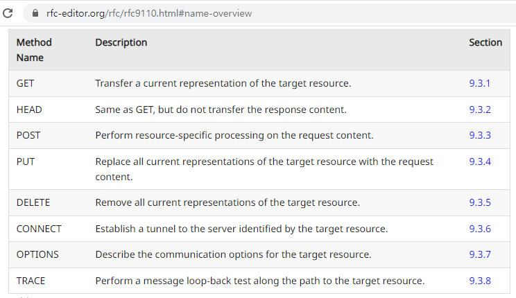 REST API 요청 정보 사이트 'RFC9110' : https://www.rfc-editor.org/rfc/rfc9110.html#name-overview
